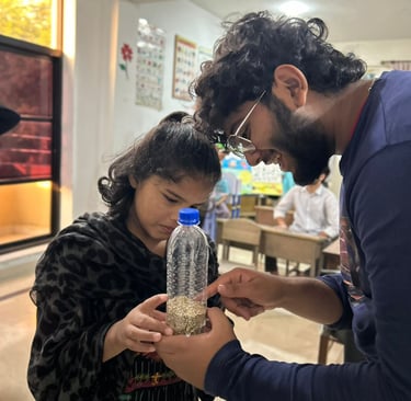 Educating children on recycling waste to make tools out of it.